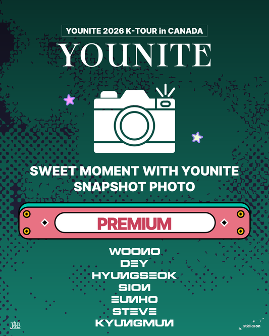 A: The "Fanchat" (included in the PLATINUM TICKET) consists of chatting for 60 seconds with one member of YOUNITE and getting a photocard or an album signed with the format « To: *your name* ». The "Fansign" (included in the PLATINUM and the VVIP TICKET) consists of walking down the table where all members of YOUNITE are sitting down and you get an autograph from all members. Please note that for the "Fansign", you can only get the front page of an album signed.
